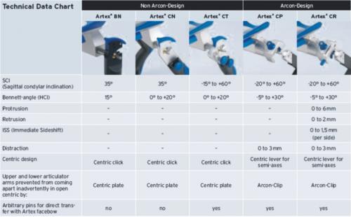 所有的功能與原有的ARTEX咬合器同,不同之處在於無需螺絲固定著裝板