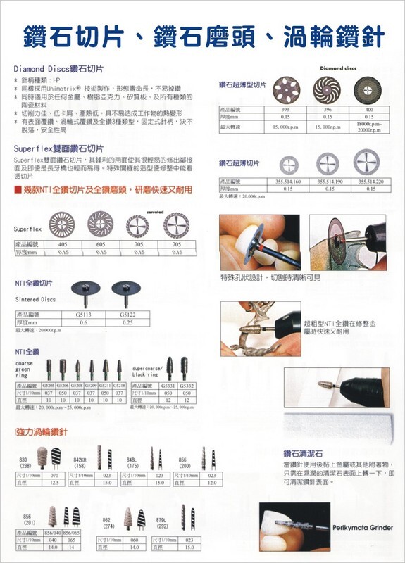 鑽石切片、全鑽磨頭、渦輪鑽針